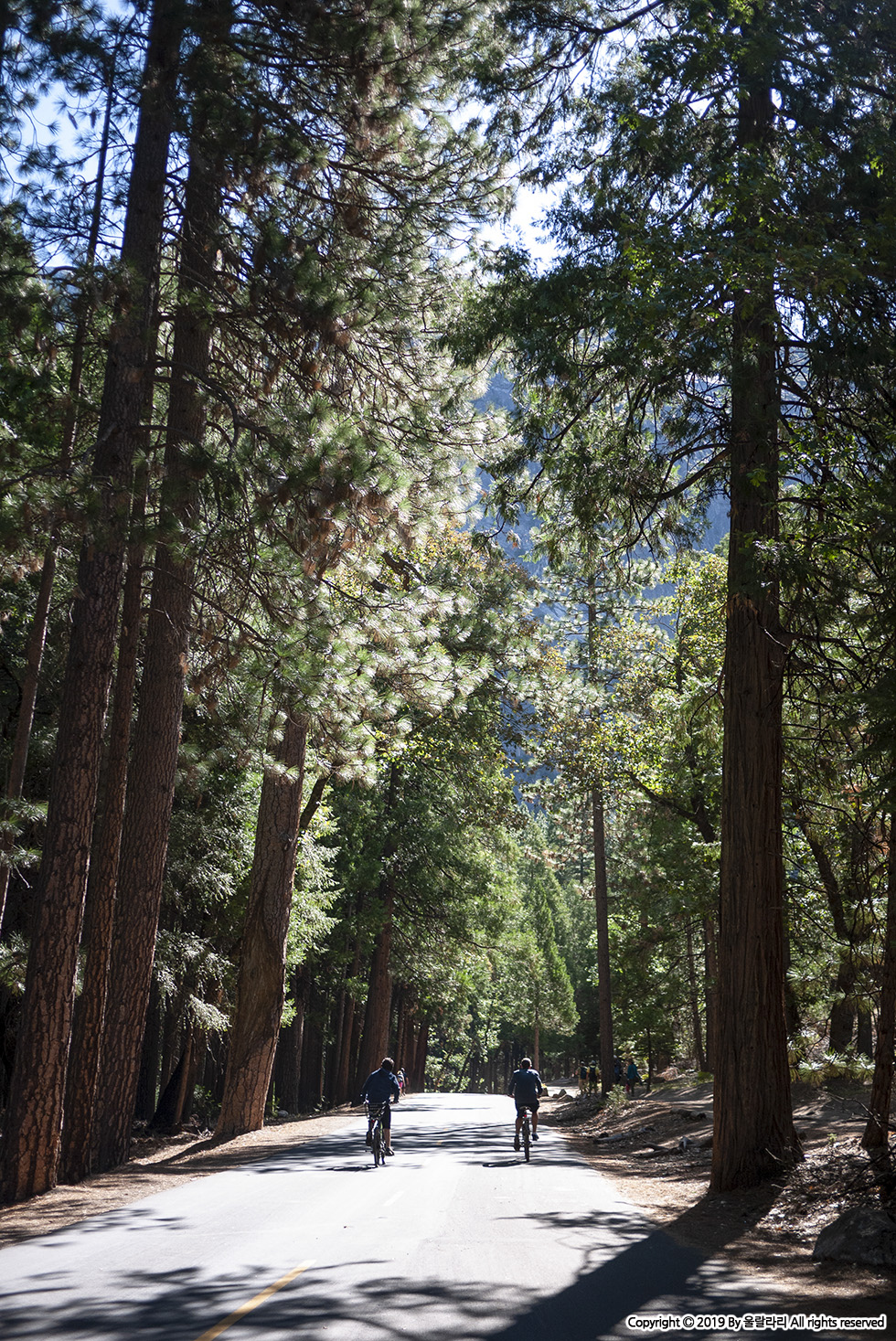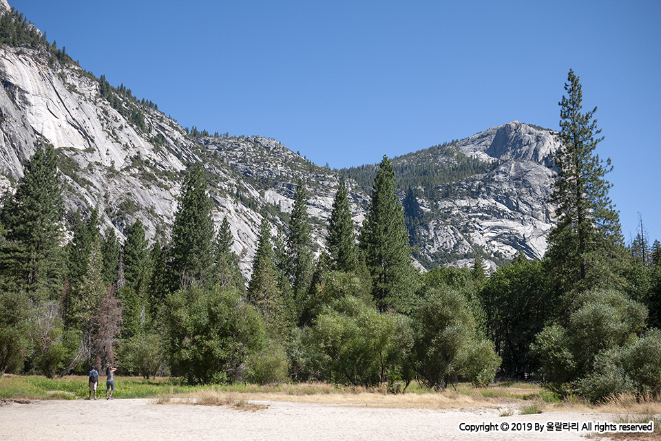 돌아올 때는 포장이 잘 된 길을 걸으며 하늘을 향해 높게 뻗은 나무를 쳐다봤어요. 미세먼지라고는 하나도 없는 하늘과 시원한 바람, 뜨거운 햇빛을 가려주는 고마운 나무, 모든 것이 조화를 이루며 여행의 즐거움을 배로 느끼게 해 주었어요. 요세미티에서 보낼 시간이 별로 없다면 한 시간만이라도 시간을 내서 미러 레이크는 꼭! 가보세요. 후회하지 않을 거예요.