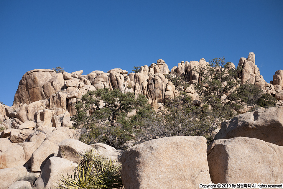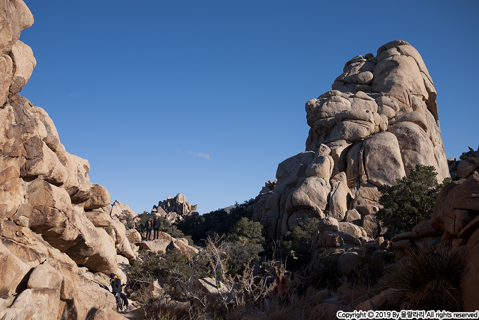 히든밸리 트레일에서는 높고 낮은 기묘하고 다채로운 바위산을 만나게 됩니다. 히든밸리에 있는 돌 모양은 신기하게도 누군가 곱게 쌓아 올린듯한 모습을 하고 있지만 자세히 보면 오랜 시간 깎이고, 위에 있는 것들이 굴러 떨어지면서 마치 차곡차곡 쌓아 올린 것처럼 보입니다. 누가 이 많은 걸 일일이 쌓아 올렸겠어요? ㅎ 아! 외계인이라면 모를까. -_-