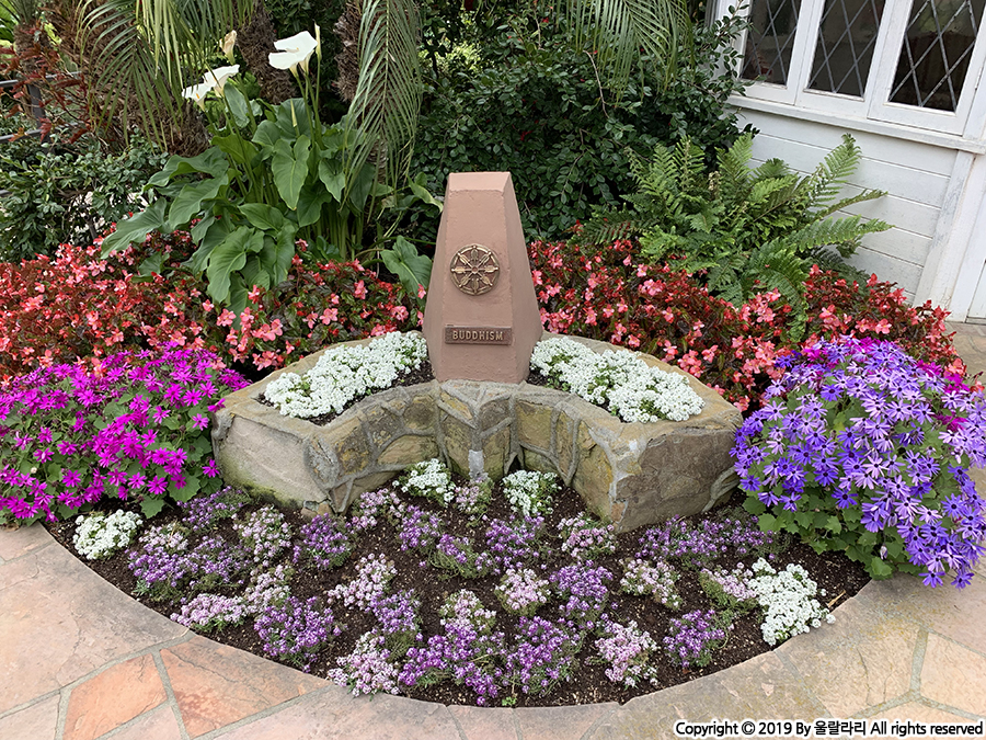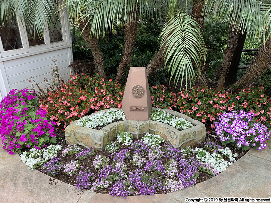세계의 대표적 종교인 기독교, 유대교, 불교, 이슬람교, 힌두교의 심볼을 비석에 새겨 한 공간에 모아 모든 종교는 결국 같은 목표를 갖고 있다는 것을 강조하고 있습니다.