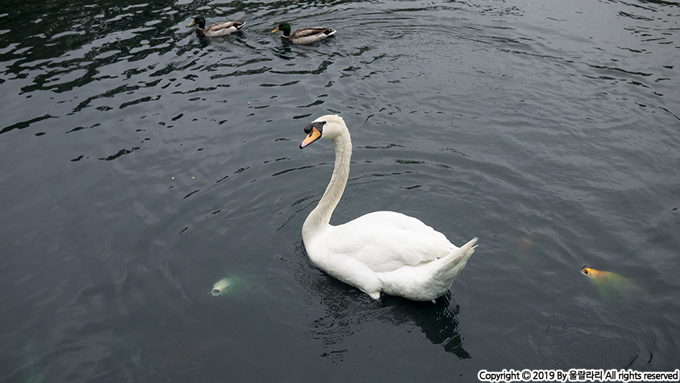 이 호수의 주인인 두 마리 백조가 여유롭게 돌아다니고 있습니다. ^-^