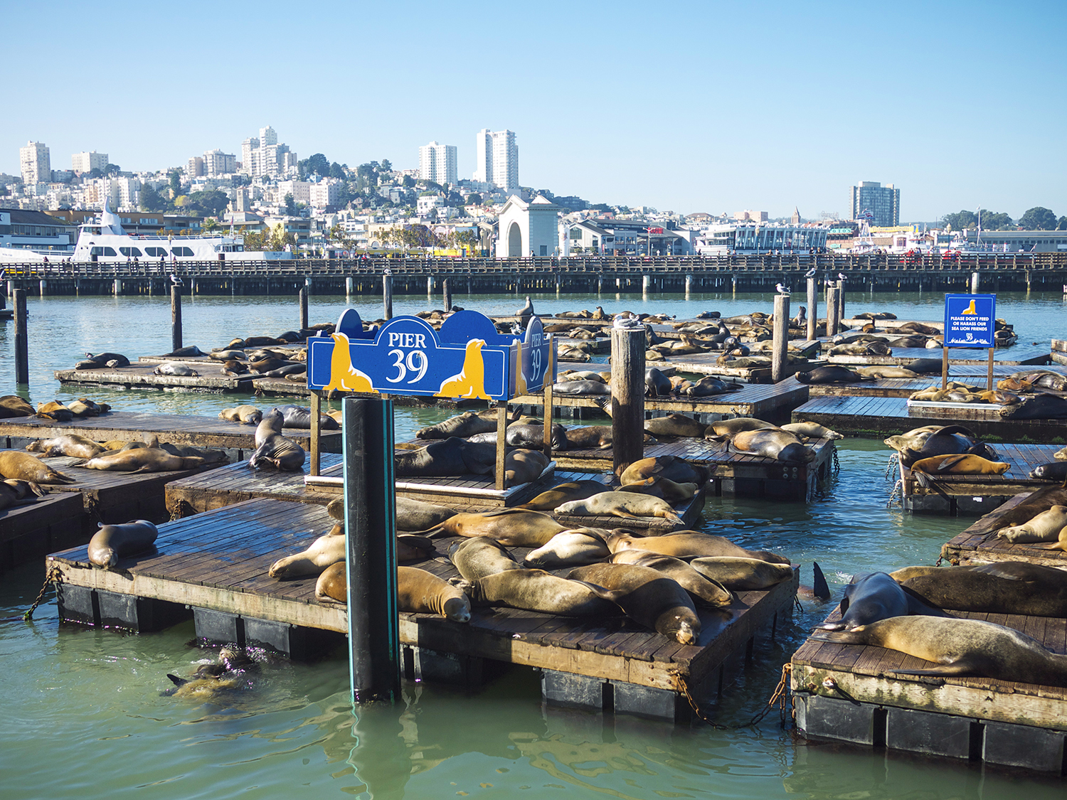 페리 빌딩에서 해안길을 따라 30분 정도 걸으면 피어 39에 도달한다. 피셔맨스 와프 FISHERMAN'S WHARF 구역에 위치한 피어 39는 선착장을 개조해서 만든 쇼핑센터이다. 수많은 맛집 중 크랩 하우스에서 게요리는 꼭 맛보시길. 또한 수많은 바다사자를 가까이에서 볼 수 있어서 관광객들이 끊임없이 찾는 명소가 되었다.