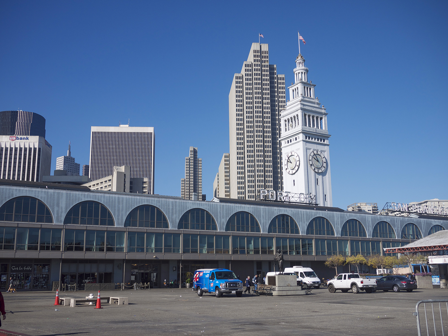 1898년에 지어진 역사적인 페리 빌딩은 여객선 터미널로 사용되고 있는 동시에 각종 음식점과 가게들이 들어서 있다. 화 목 토요일에는 파머스 마켓이 열어 보는 재미가 쏠쏠하다. 또한 편리한 접근성 때문에 다른 지점보다 페리빌딩 내에 있는 블루 보틀 지점을 사람들이 가장 많이 찾는다.