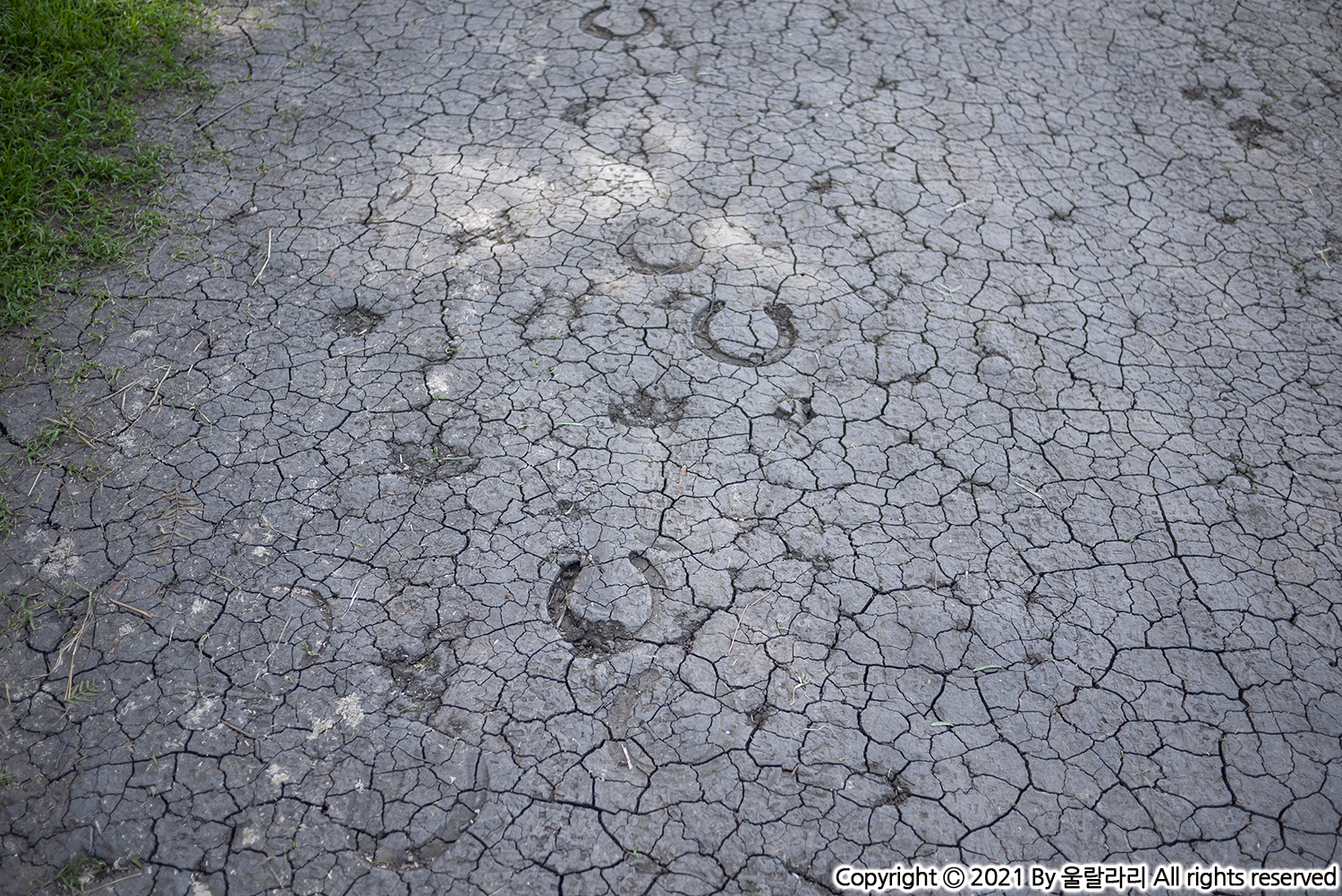 완전히 메말라버린 사막처럼 땅은 쩍쩍 갈라져 있고, 농장 말들의 발자국이 화석처럼 선명하게 찍혀있어요. 올해는 가뭄을 벗어날 수 있을까 했는데, 바람과는 달리 전혀 그렇지 못하네요.