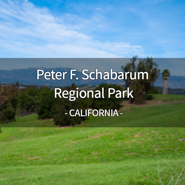 <넓은 풀밭과 설산이 보이는 LA 샤버럼 공원 Peter F. Schabarum Regional Park>