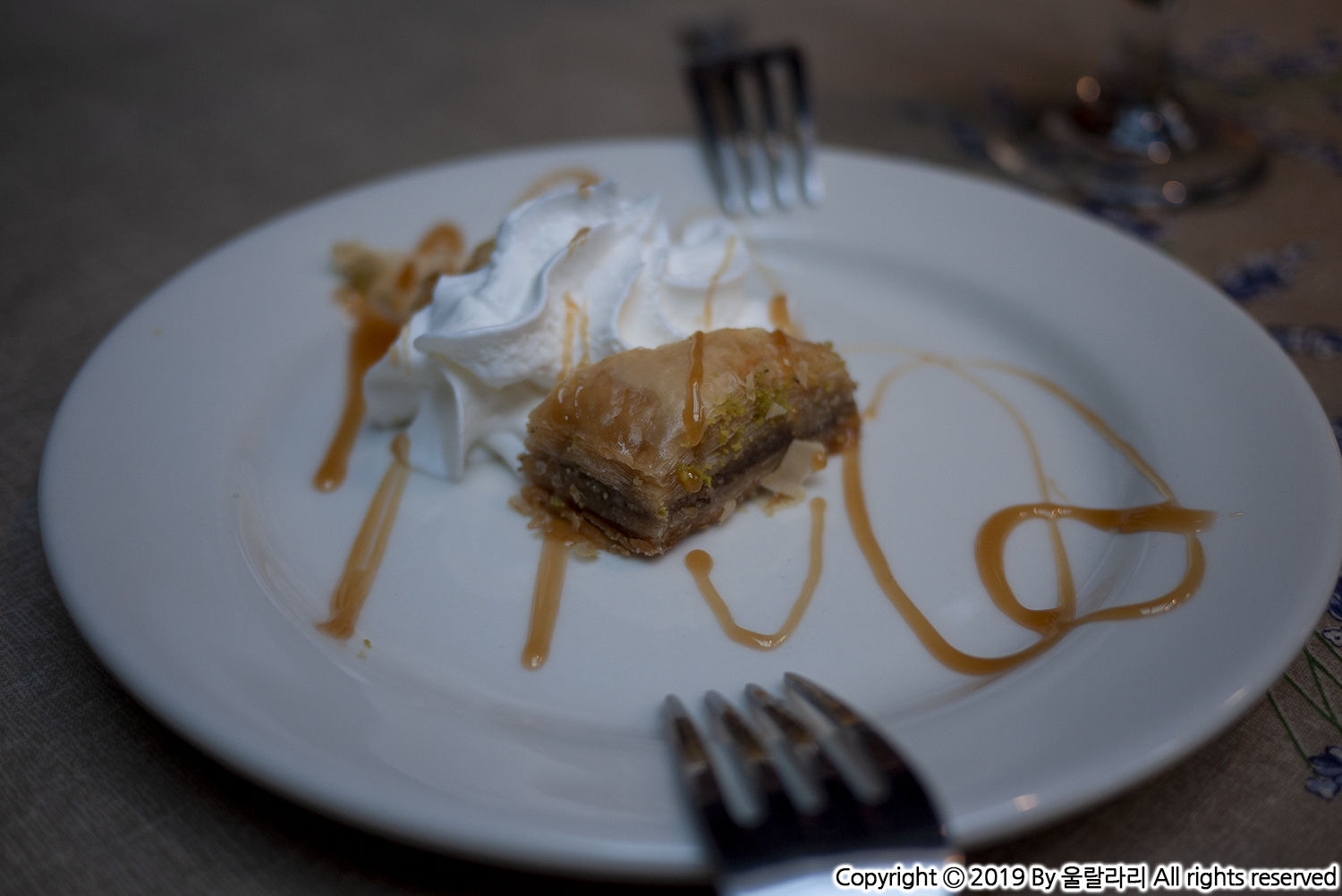저도 퓔을 받았던지라 평소에 시키지도 않던 탄산수를 한 병 주문해서 마시고 있는데, 물담당 서버가 제 컵에 맹물을 투척. 0-0 얌마! 이거 물 아니야! 어버버 하면서 옆에 둔 가방에도 물이 후두둑 떨어지고. 아하하;; 뭐, 콜라나 음식이 아니라서 크게 신경 쓰진 않았는데, 매니저가 디저트를 무료로 내주었어요. 하지만 받은 만큼 팁으로 지불했습니다. -_- 뭔가 공짜로 받으면 마음이 편하지 않아서요. ㅎ