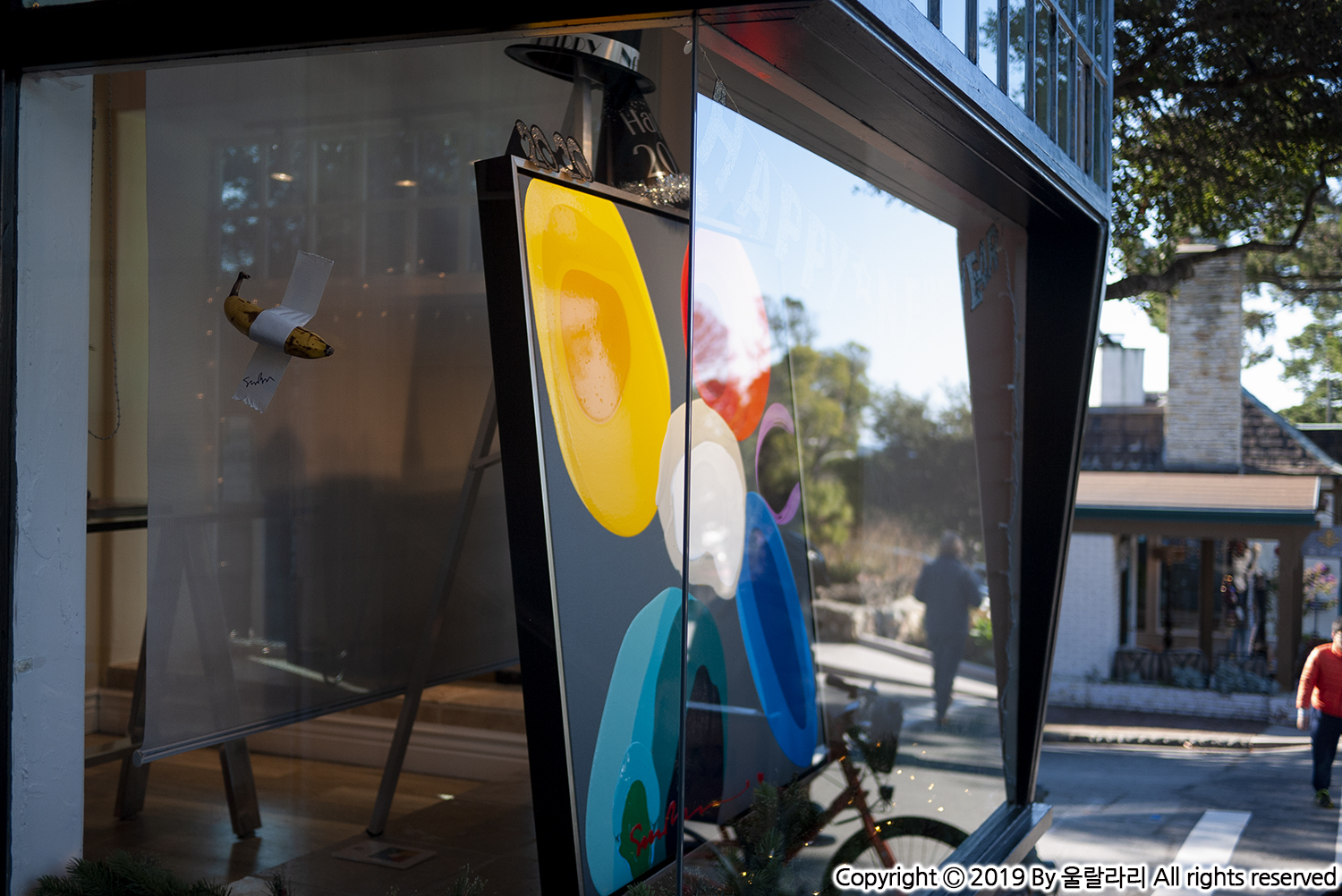 콩트처럼 점심식사를 마치고 오션 애비뉴를 따라 바다로 향했습니다. 카멜에는 예술도시답게 갤러리도 무척 많습니다. 그러다 눈에 띈 바나나 한 개. 예전에 1억 4000만 원에 팔린 벽에 붙인 바나나를 행위예술가가 먹어치운 일이 있었죠. ㅎ 바나나와 테이프만 있으면 우리도 예술가가 될 수 있어요. ㅎㅎ