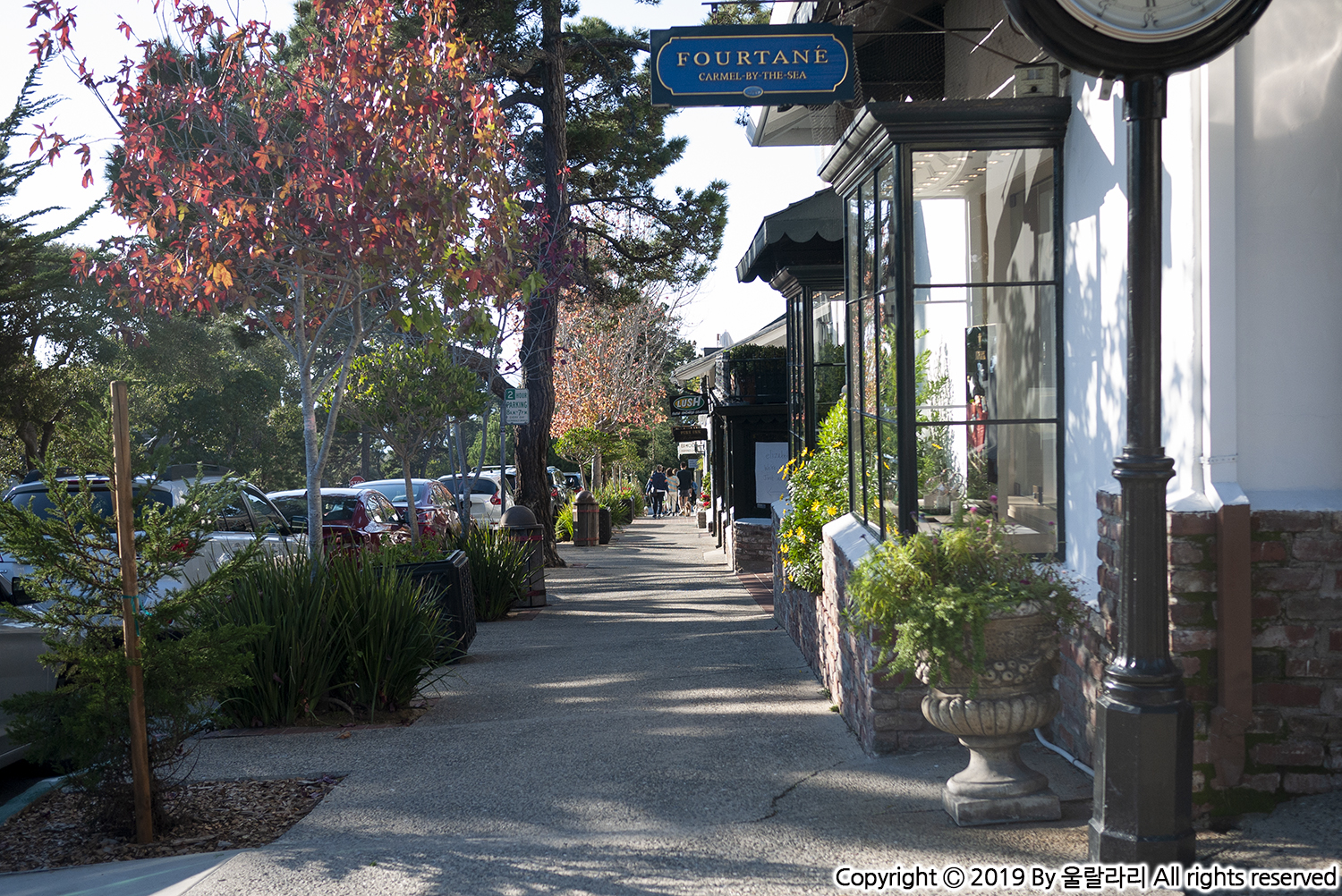 카멜의 상점들은 오션 애비뉴 OCEAN AVENUE를 중심으로 분포되어 있어요. 또한 이 길을 따라 서쪽으로 가면 카멜 비치 CARMEL BEACH가 나옵니다.