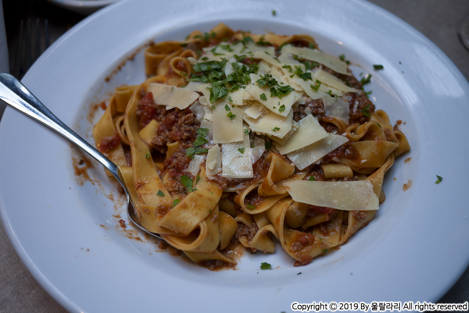 자몽과 아보카도, 새우가 들어간 샐러드와 라구 파스타를 시켰어요. 엄청 맛있어! 정도는 아니지만 그럭저럭 먹을만했어요. 카멜 대부분의 식당은 어느 정도 맛은 보장되어 있기 때문에 꼭 포타벨라에 갈 필요는 없어요.