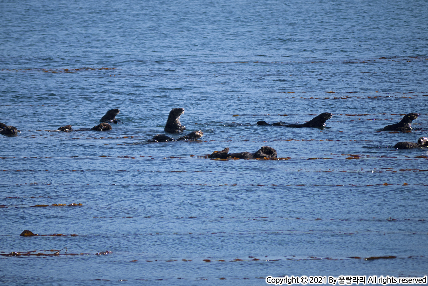 아까 위에서 봤던 검은 물체 기억하시나요? 정체는 바로~~~~ 해달입니다. 예전에 포인트 로보스를 갔을 때 해달 사진을 찍지 못한 게 한이 돼서 이번에는 줌렌즈로 1순위로 챙겼어요.