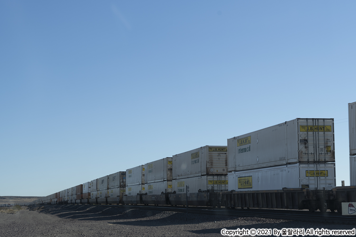 미국의 철도는 사람을 위한 교통수단이라기보다 주로 화물 운반을 위한 수단으로 쓰입니다. 컨테이너가 끝없이 실린 기차가 한번 지나가게 되면 5~10분은 기다려야 합니다. ㅎ