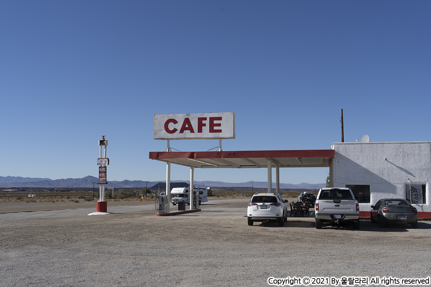 이번 데스밸리 여행을 계획하면서 중간에 모하비 사막이 있다는 걸 알게 되었어요. 그래서, 시간이 조금 걸리더라도 모하비 사막 방향으로 가기로 결정했습니다. 그리고 추가로 미국의 역사적인 고속도로 루트 66가 모하비 사막으로 들어가기 전에 있다는 것도 알게 되었지요. 이미 알게 된 이상 이런 장소는 방문해 주는 게 예의죠. ^-^