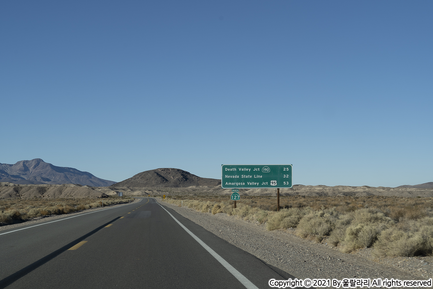 한참 후에야 나타난 데스밸리 정션 표지판. 안심하지 말아라, 표지판이 나왔다고 다 온 건 아니다. 하하하.
