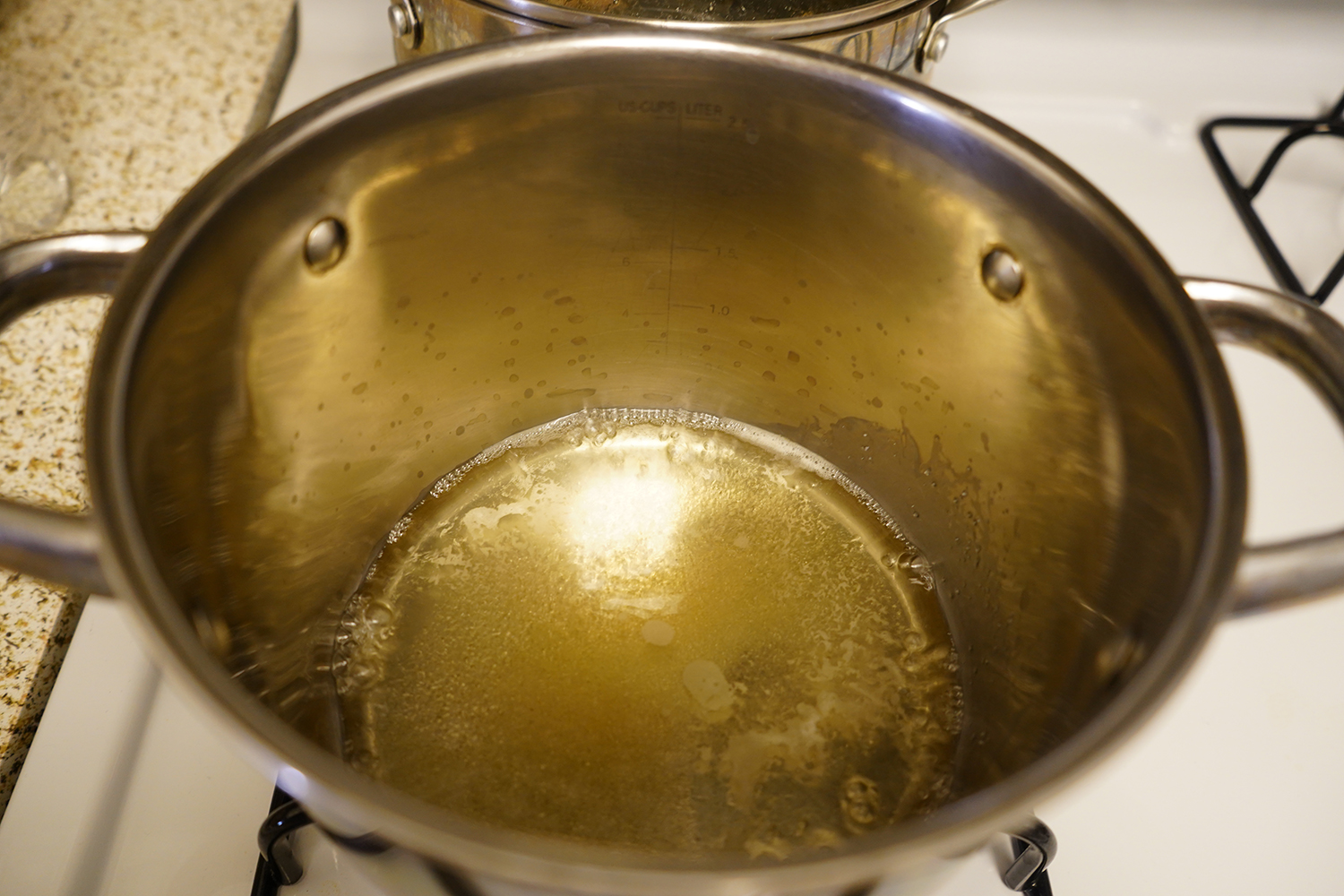 시트에 발라줄 시럽을 먼저 만들어요. 설탕 3큰술, 물 6큰술을 냄비에 넣고 불위에 올려, 젓지 말고 녹을 때까지 끓였다가 잠시 식혀 둡니다.