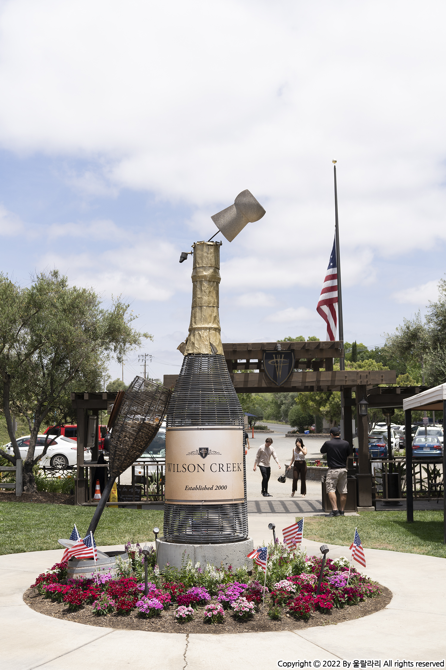 입구에는 윌슨 크릭 와이너리의 상징과도 같은 와인병 조형물이 설치되어 있어요.