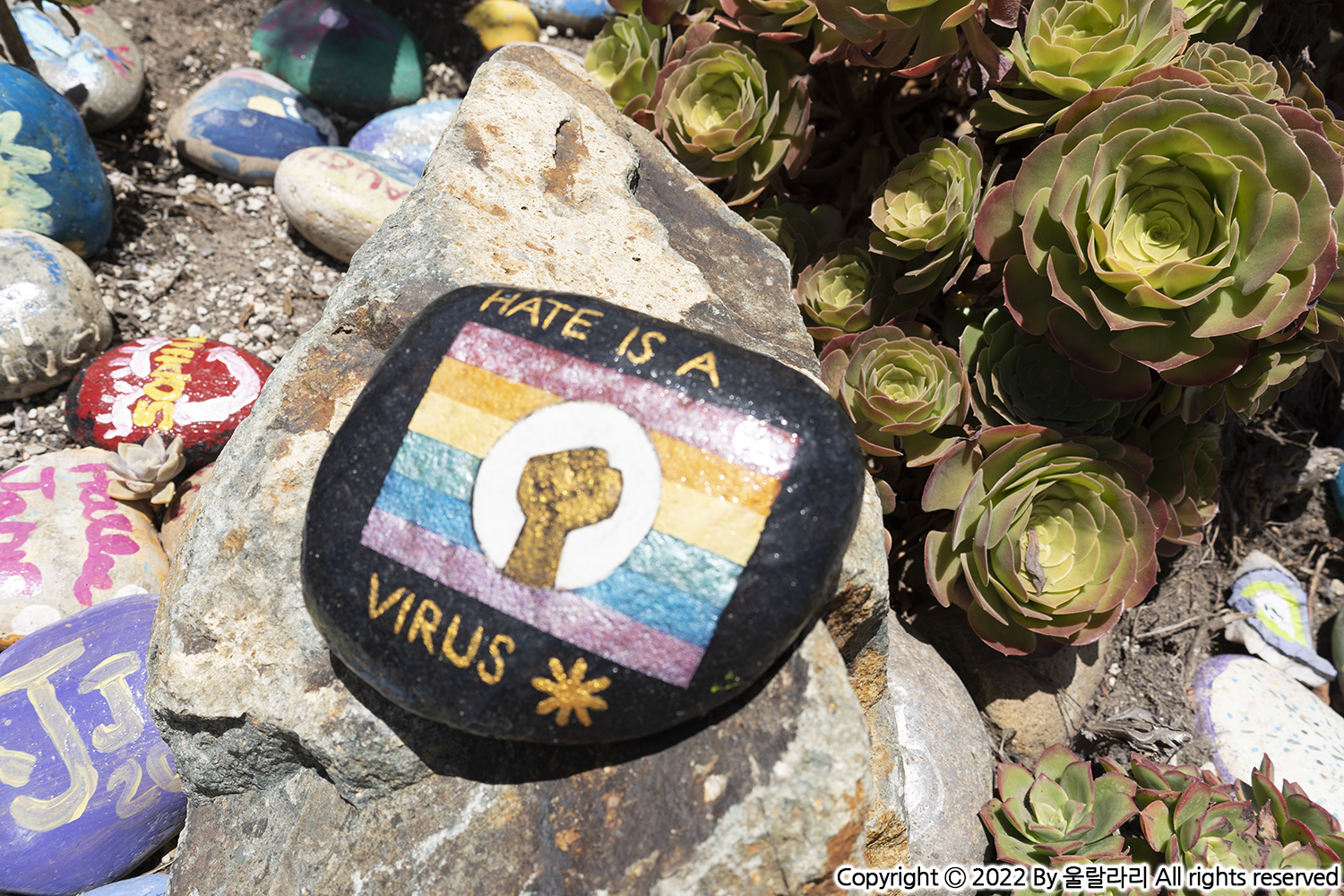 엔시니타스에는 이름부터 예쁜 문라이트 비치가 있어요. 수영할 계획은 없었지만 그래도 바다 구경은 해보고 싶어서 문라이트 비치로 향하던 중, 아주 독특한 장소를 지나가게 되었어요. 멀리서도 보일만큼 알록달록한 자태를 뽐내고 있던 데이브스 락 가든 Dave's Rock Garden. 어떤 모습인지 차근차근 살펴볼까요?