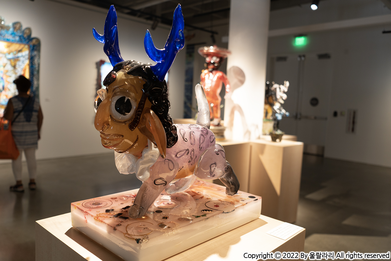 유리공예, 대형 그림, 조형물 등 다양한 기법을 사용해 작품을 만들었어요.
