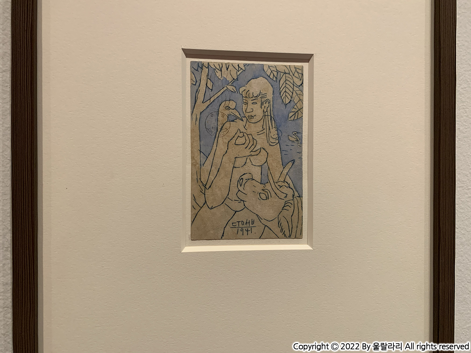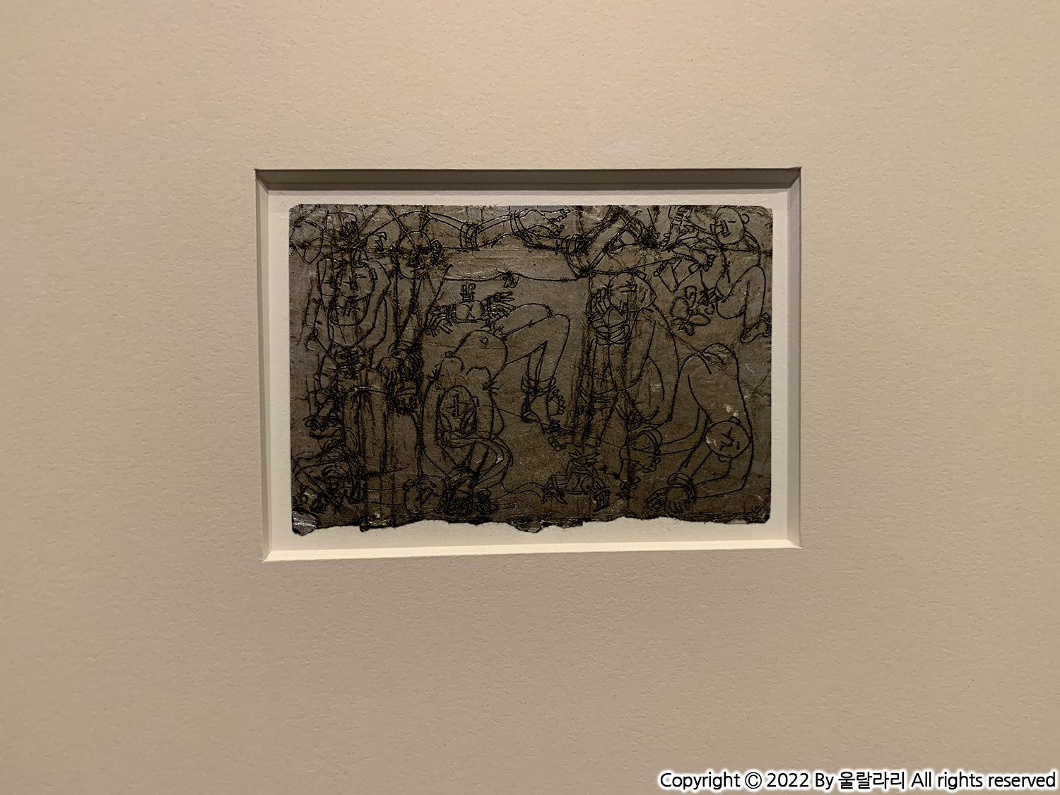 이게 바로 껌종이에 그린 그림이죠. 사이즈가 매우 작답니다. 돈이 없어서 껌종이에 그렸다는 사실이 너무 슬프죠. 생전에 유명세를 얻고, 작품 활동을 하셨으면 하는 아쉬움이 남아요.