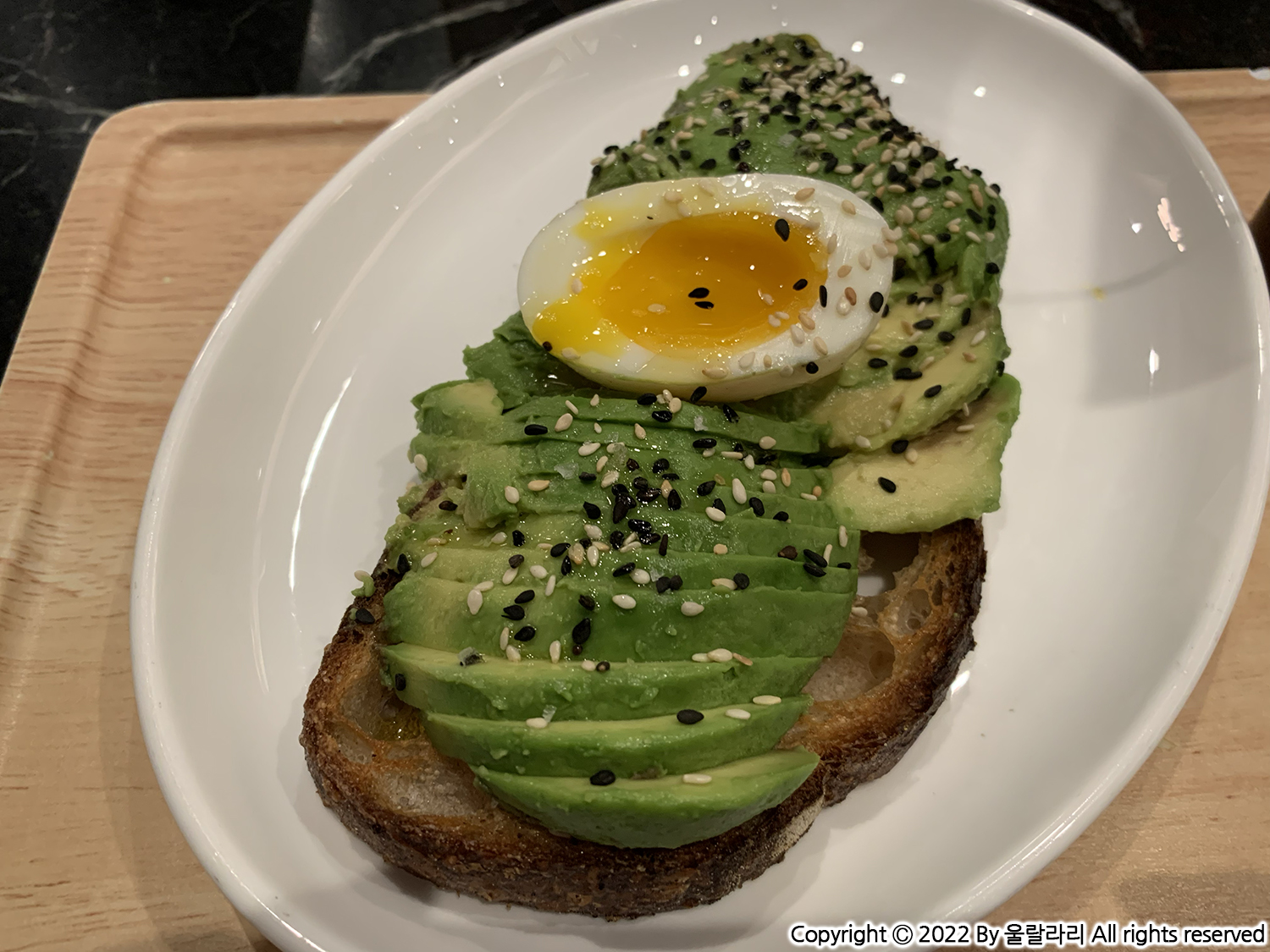 전시를 다 보고 배가 고파서 미술관 옆에 있는 카페에 들어갔어요. (맛집이고 자시고 찾을 배고픔이 아니었음. -_-) 잠봉 브리(브리치즈가 들어감)와 아보카도 토스트와 커피를 먹었어요. 가격이 사악하게 비싸지만 맛은 좋았어요.