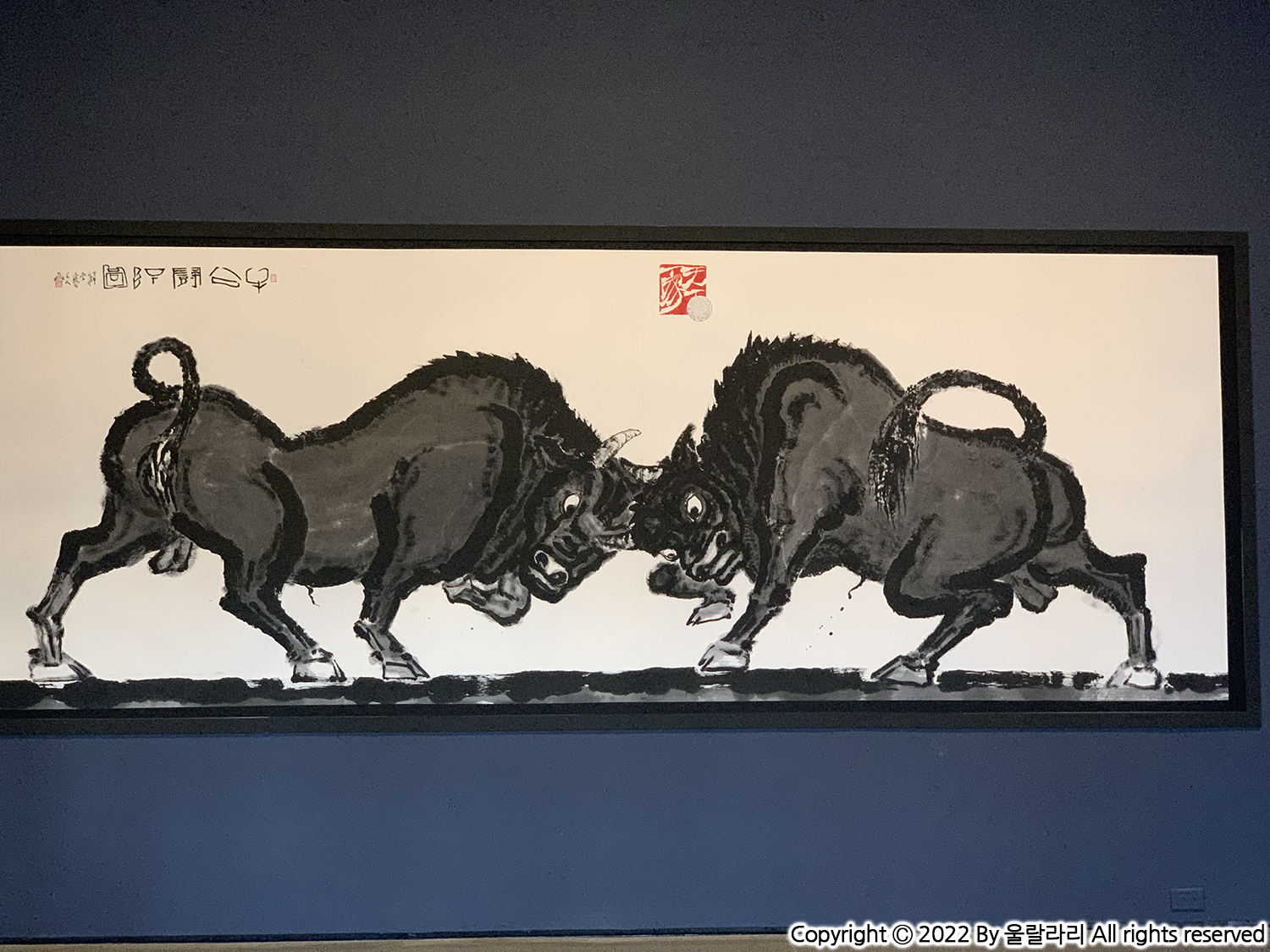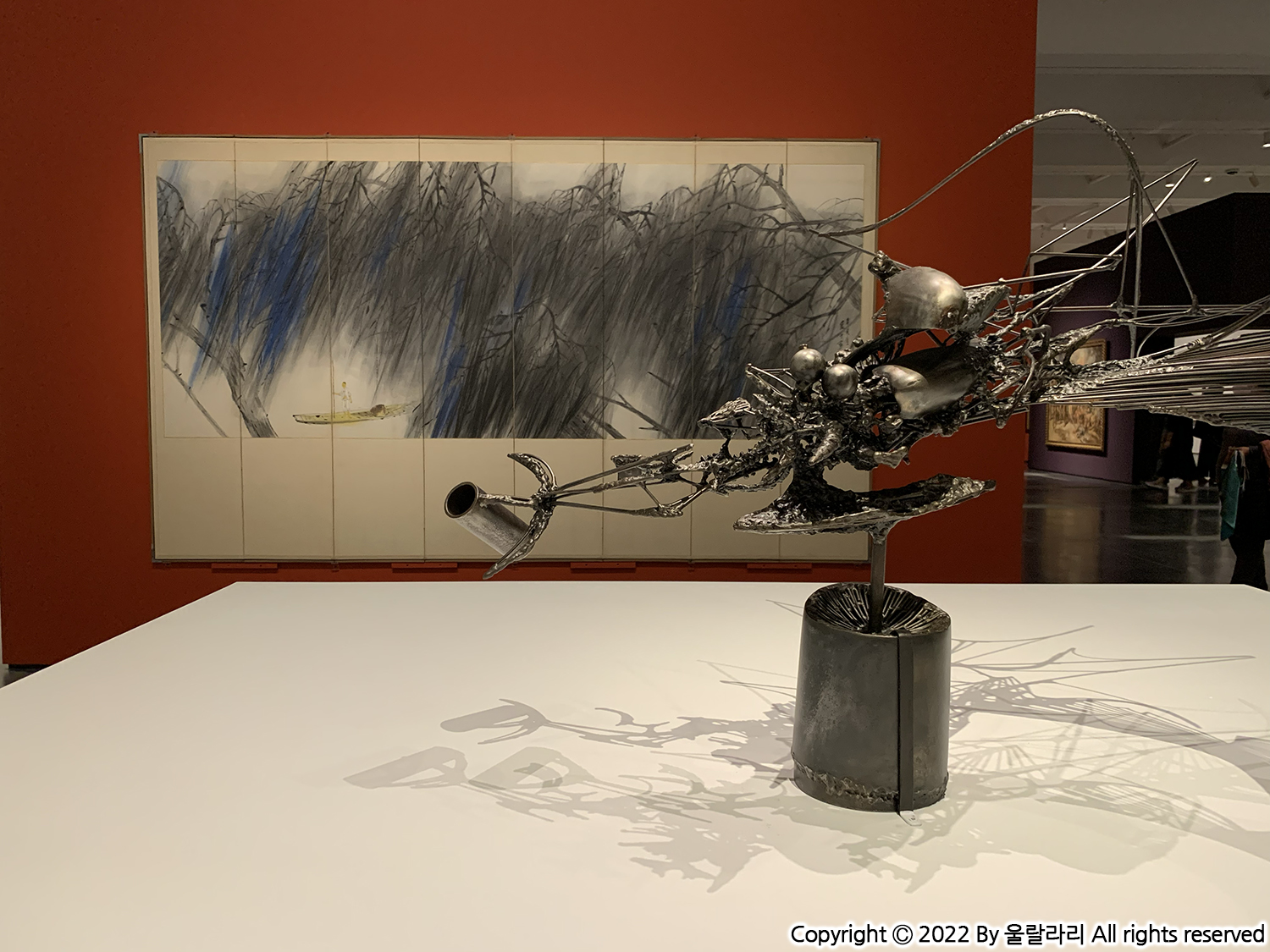 다시 1층으로 내려오니 거대한 그림이 전시된 공간이 있었어요. 박대성 화가의 전시였는데, 과감한 붓터치와 독특한 원근법이 시선을 사로잡았어요. 미국에선 늘 서양화가의 그림만 접해서 한국 화가들의 작품이 이렇게 멋있는지 몰랐는데, 이번 기회에 한국에도 멋진 작품이 많다는 걸 새삼 알게 되었습니다. 이분의 전시는 2023년 2월 5일까지 진행됩니다. 얼마 안 남았죠. ㅜ.ㅜ 작품 수가 적지만 진짜 인상 깊었어요.