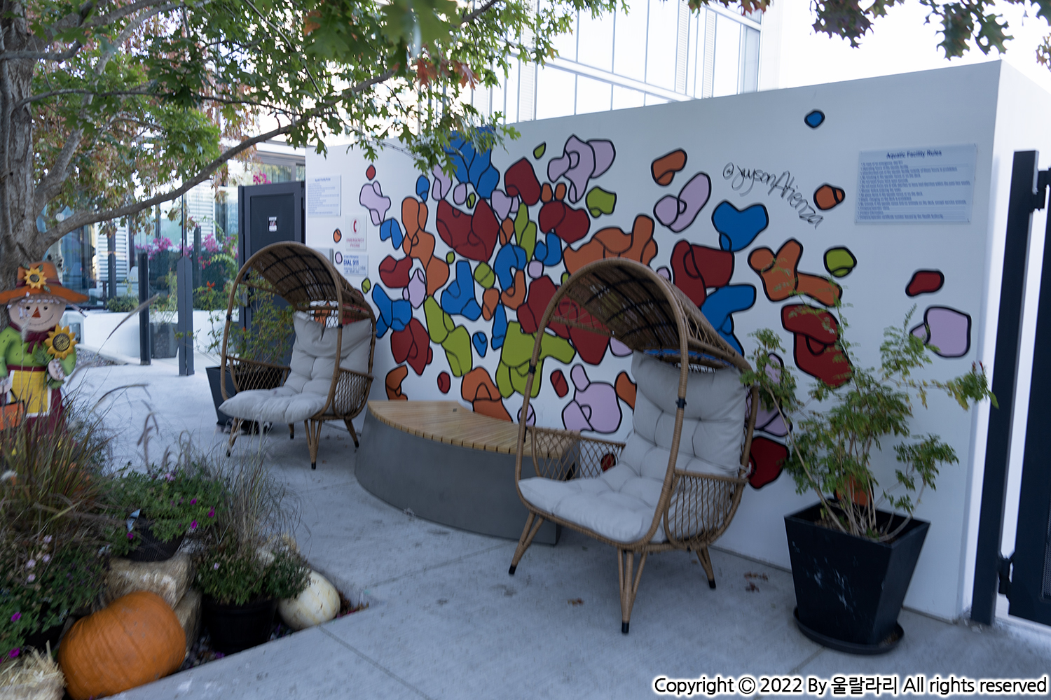 동네 그라피티처럼 막 지저분하게 그린 그림이 아니라 하나의 완벽한 작품 같은 벽화라서 여기서 사진 찍는 투숙객들도 많더라고요. (저 포함 ^-^)