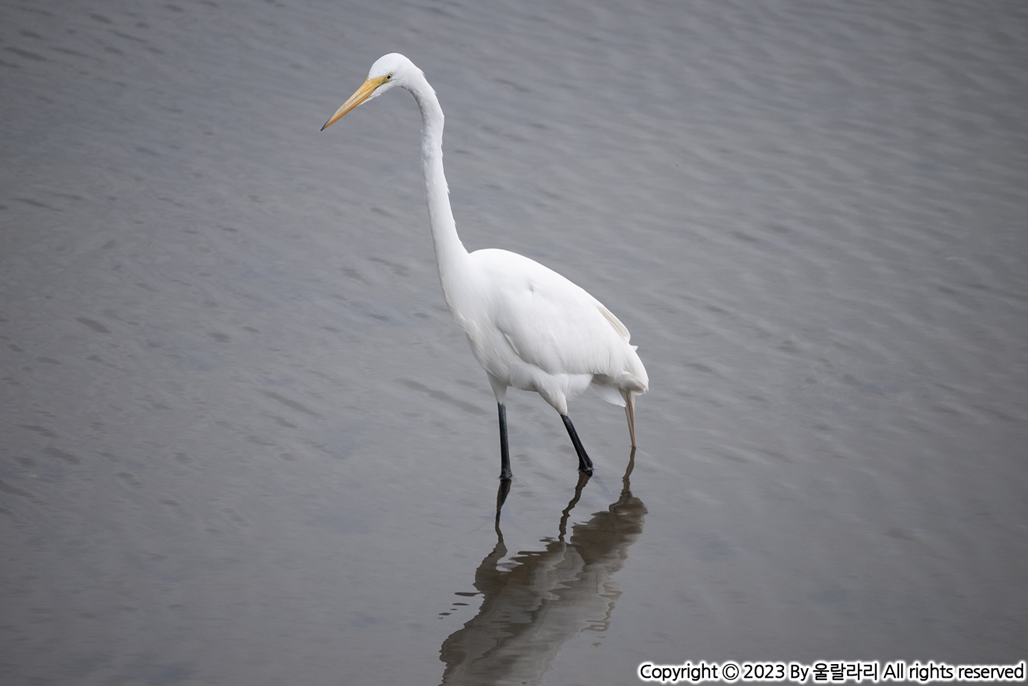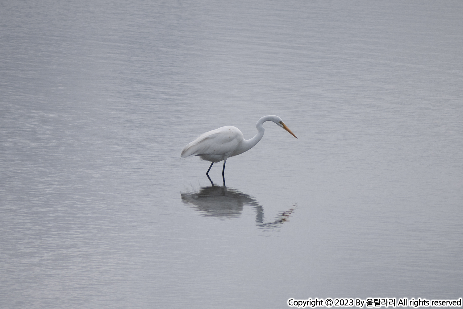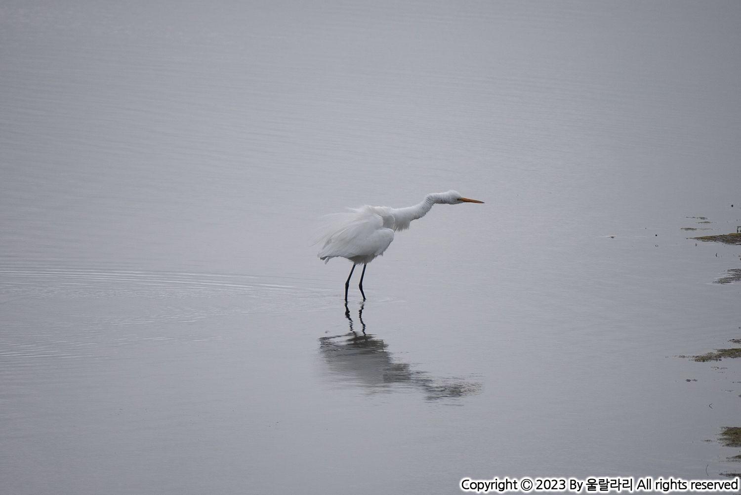최소한의 움직임으로 먹잇감을 노리는 Eastern Great Egret. 중대백로, 이름이 맞나요?
