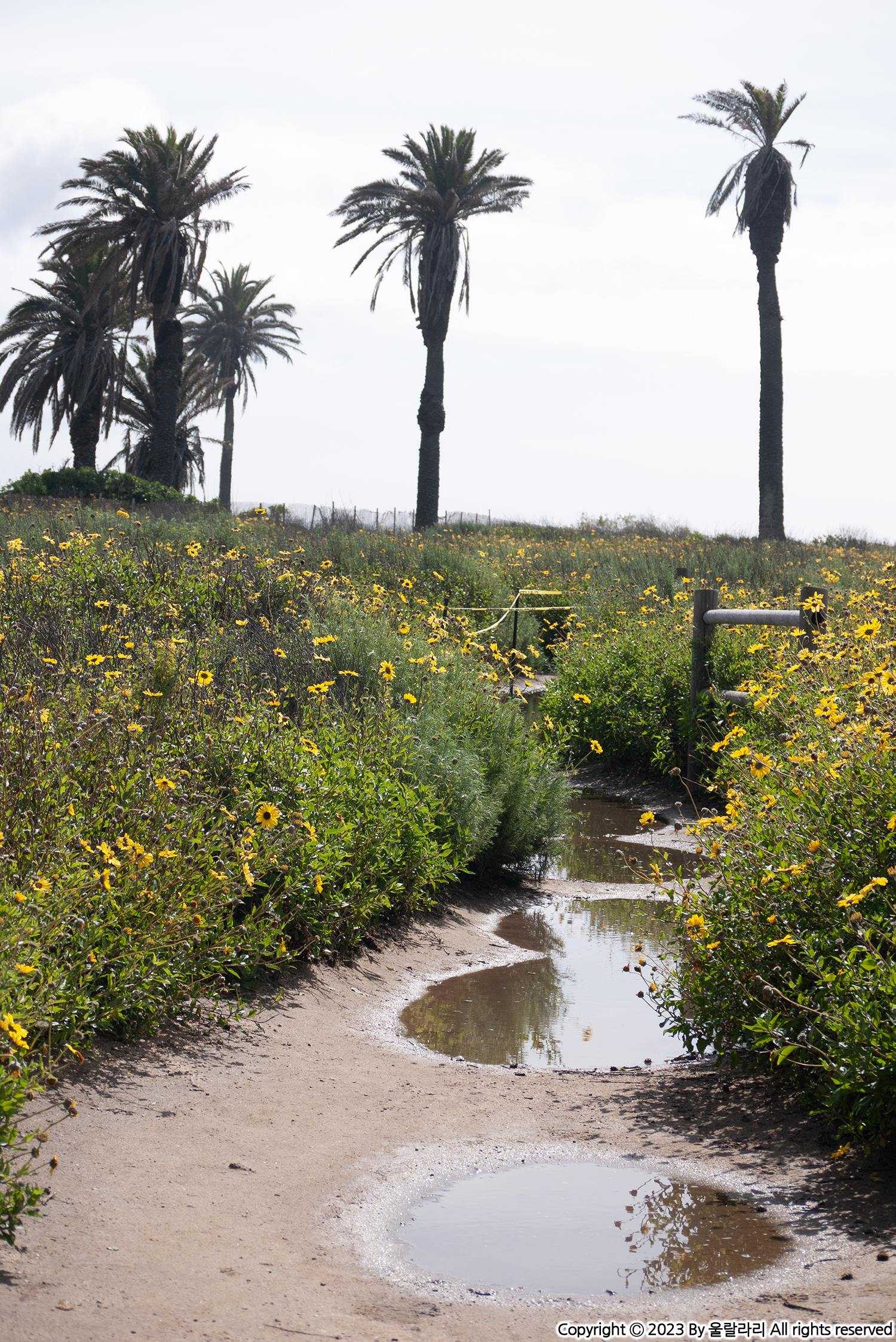이 트레일을 따라 끝까지 가면 Bolsa Chica Conservancy가 나와요. 아직 마르지 않은 웅덩이도 많고, 더 이상 꽃도 보이지 않길래, 그냥 돌아왔습니다.