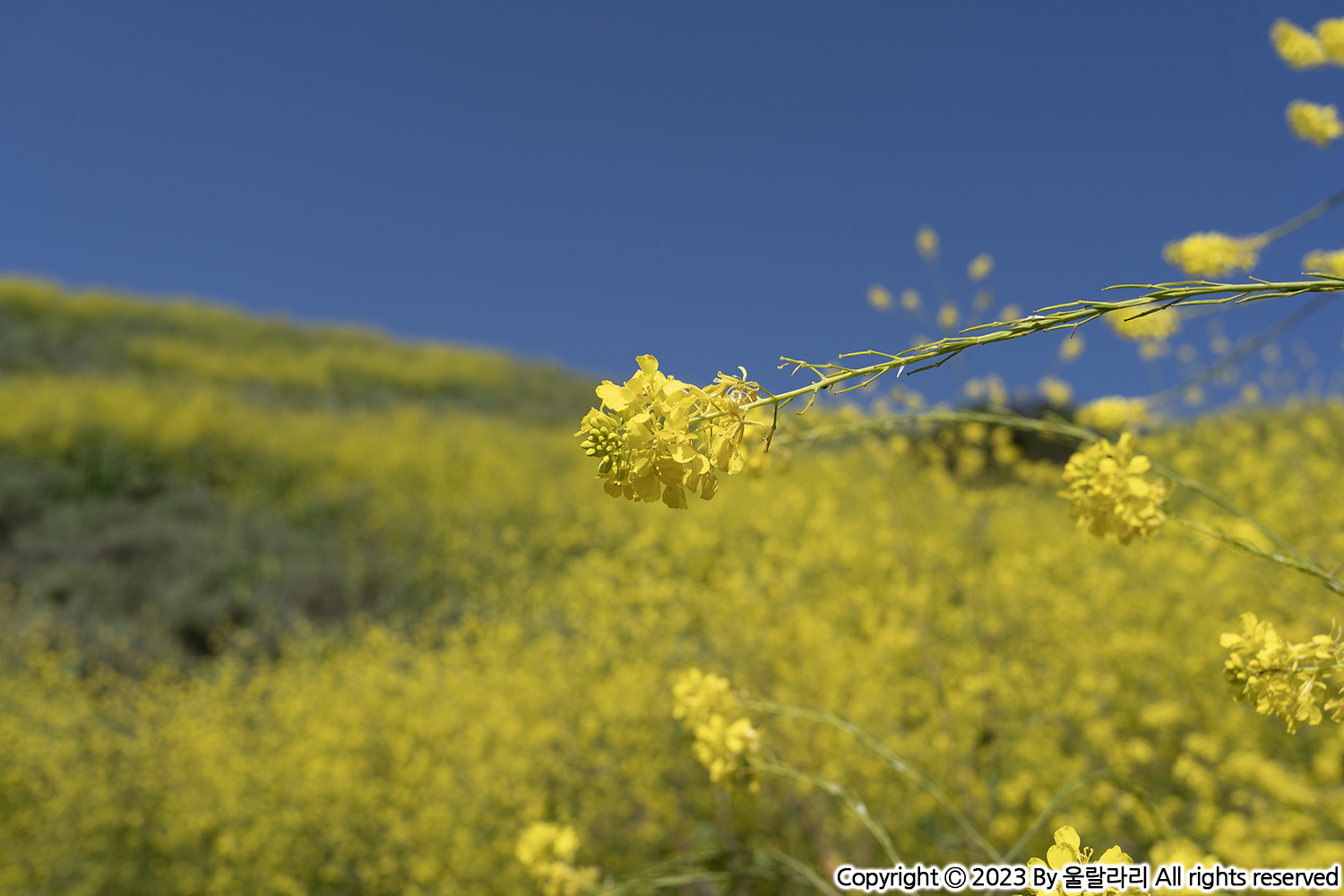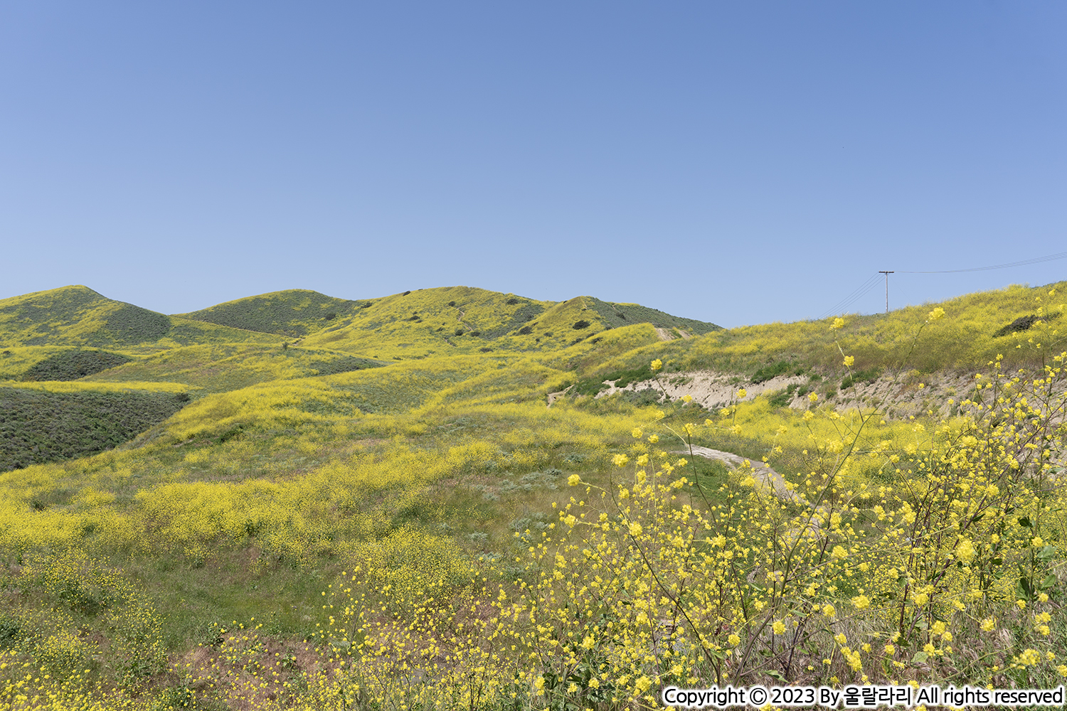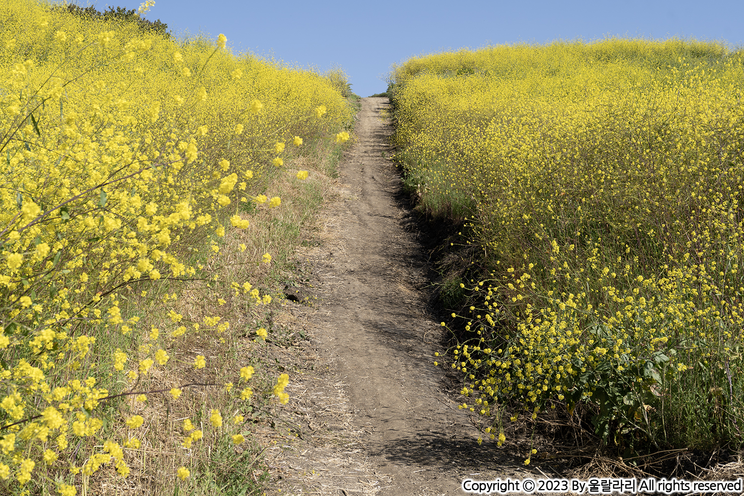 오늘도 겨자꽃으로 돌아왔습니다. 너무 지겨운가요? 하하하;;; 그래도 이번에 소개할 곳은 제가 지금까지 겨자꽃을 보기 위해 방문했던 곳 중에서 가장 최고라고 말할 수 있습니다. 시작부터 끝까지 노란 들판을 헤매다 온 것 같은 느낌이었거든요. 그럼, 노란색 옷으로 갈아입은 산으로 가봅시다.