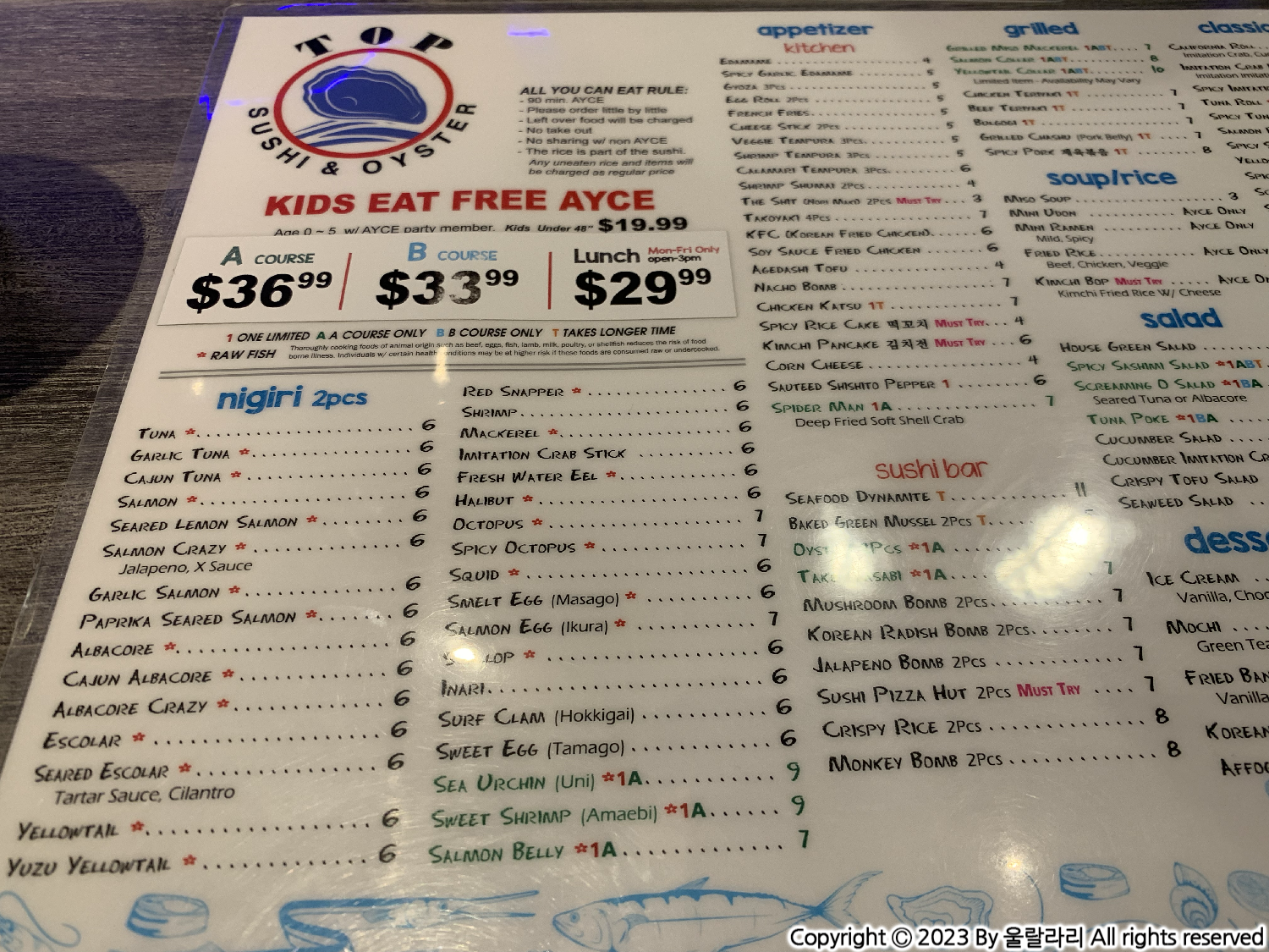 <오염수 오기 전에 마음껏 먹어보는 초밥 뷔페, 탑 스시 Top Sushi & Oyster>