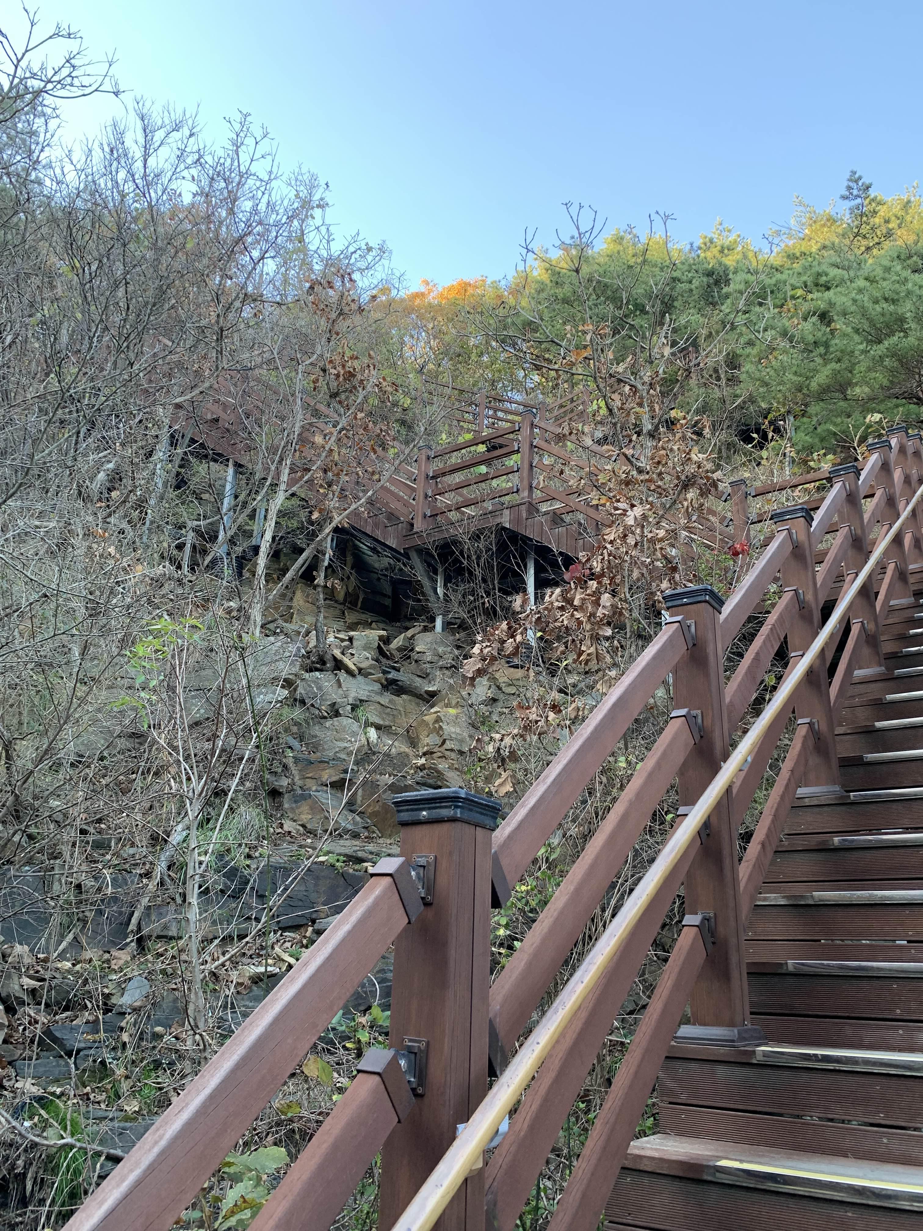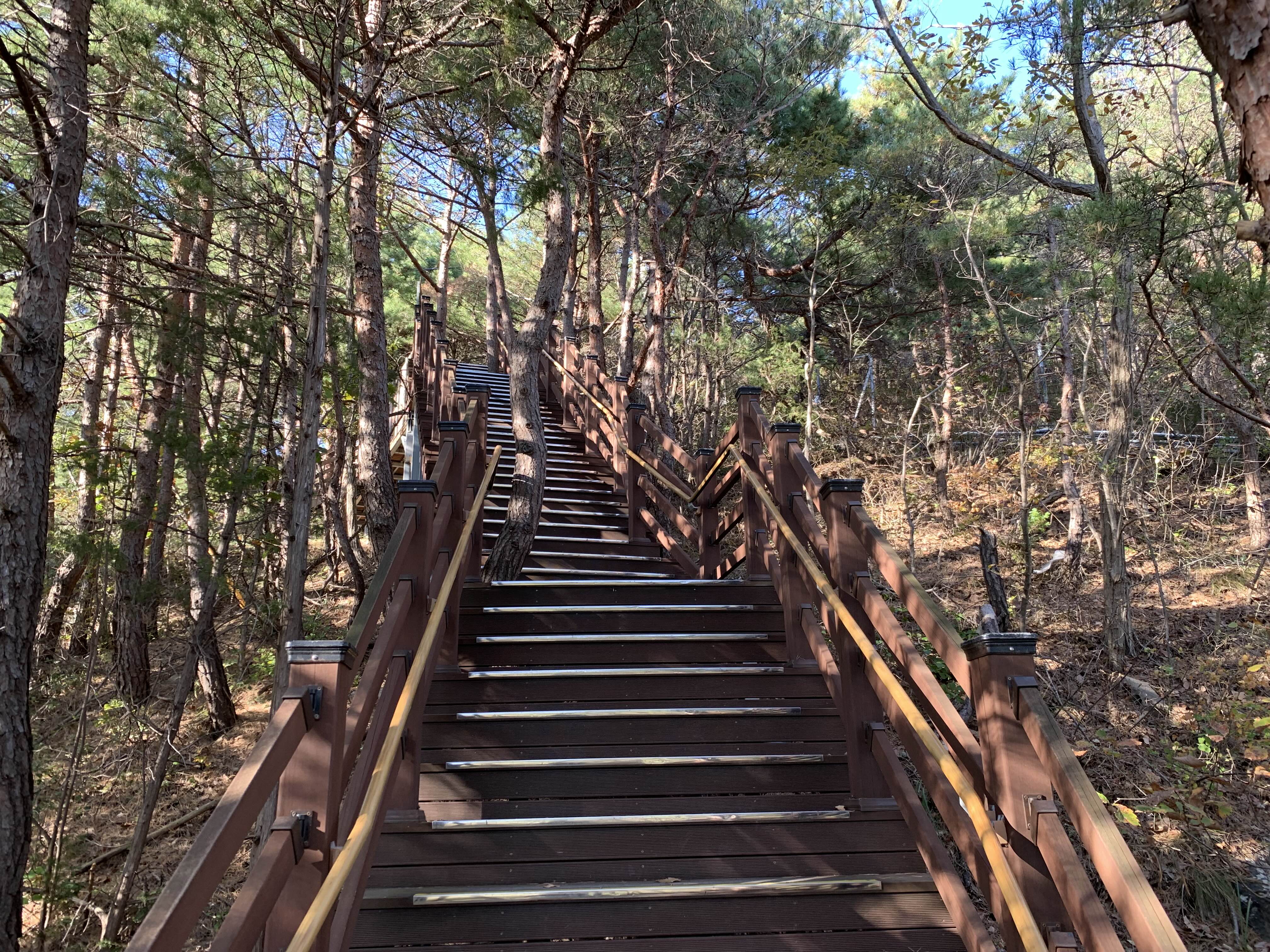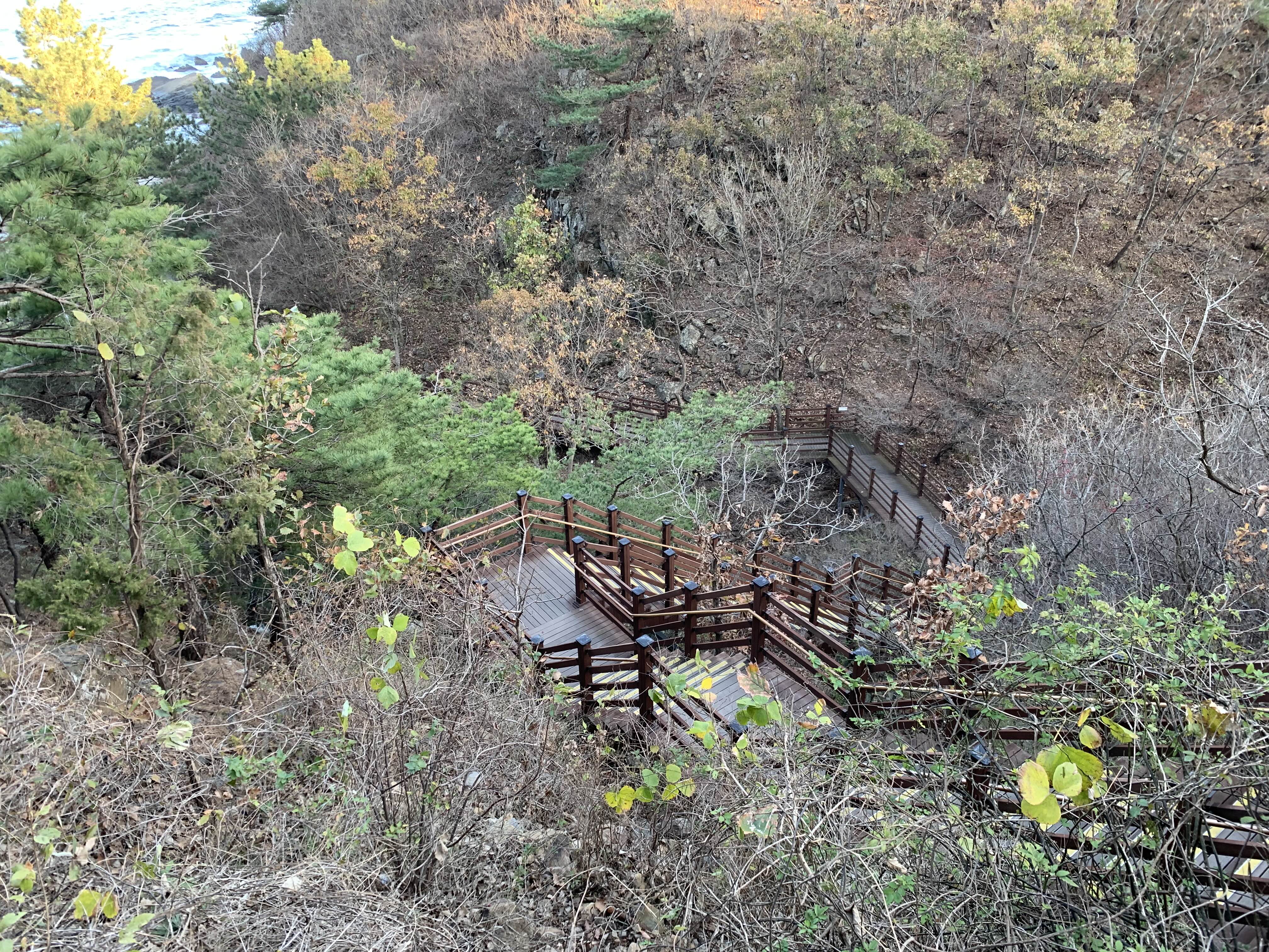 나무계단을 내려가면서 시작합니다. 왜 사람들이 정동매표소에서 시작하라는지 알겠더라고요. 그리고 대부분 편도로만 걷지, 저희처럼 왕복으로 걸을 생각은 아예 안 하시더라고요. -_- 네, 저희는 고생을 사서 하는 타입입니다. 있다가 여기 올라올 시간도 잘 계산해야겠구만.