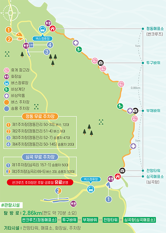 심곡항과 정동매표소 사이를 오가는 버스도 있으니 시간이 맞는다면 이용하면 좋겠죠. 그런데 하루에 6번 운영은 좀 너무 하지 않나? -_-