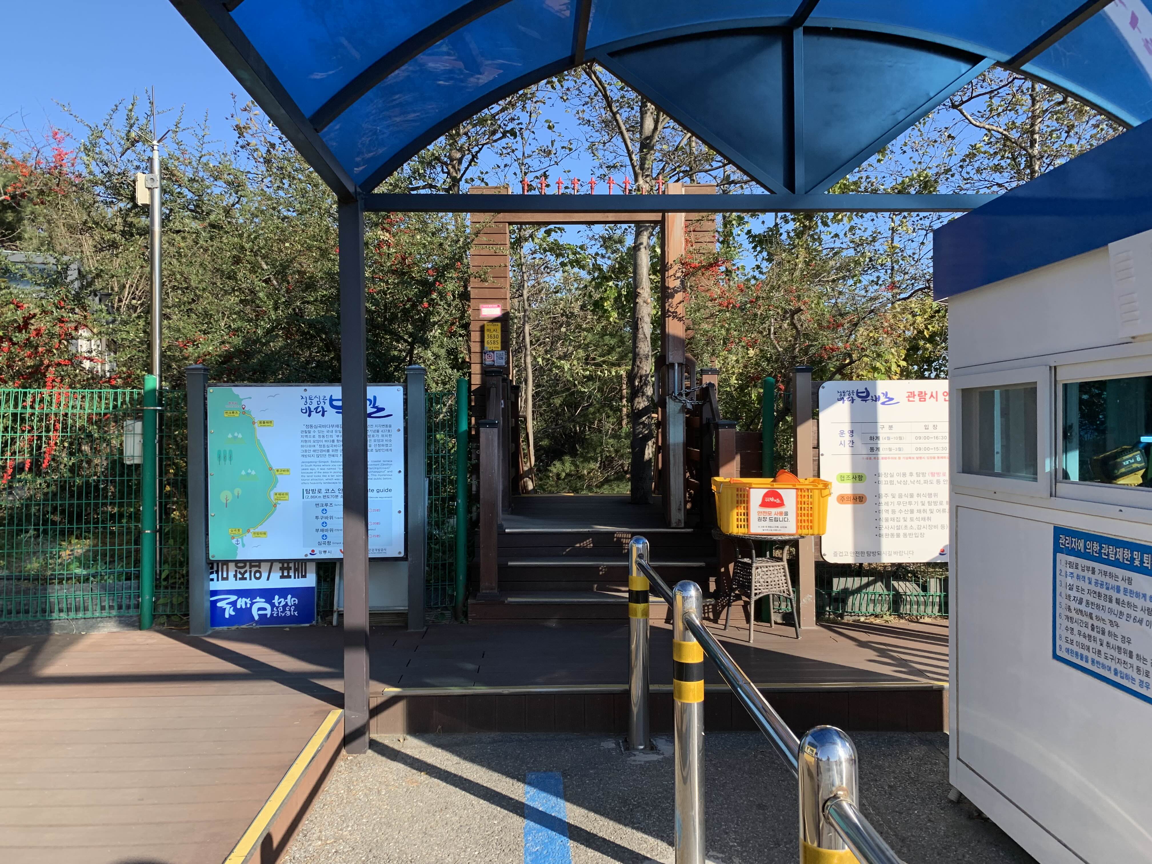 저희는 정동매표소(썬크루즈)에서 시작, 심곡매표소까지 갔다가 돌아올 생각이였어요. 그런데 이놈의 시간이...시간이 따라주지 않더라고요. 바다부채길은 편도로만 70분이 소요되고, 4시 30분까지 무조건 나와야 해요.(동절기 기준) 편도로 갈 수 있는 시간은 되었지만, 택시비가 너무 많이 나올 것 같아서 중간에 되돌아오기로 했어요.