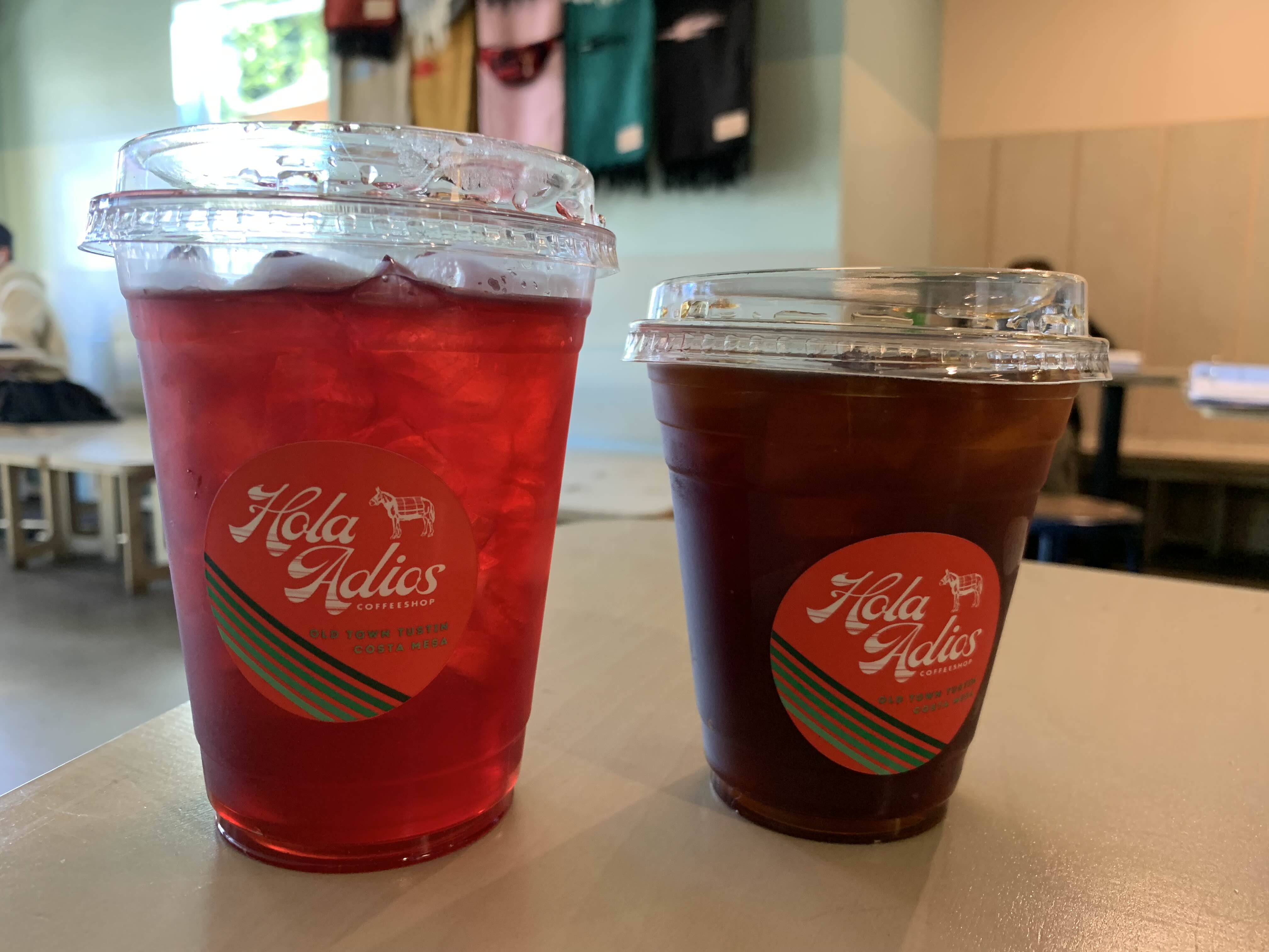 히비스커스 크랜베리 티와 콜드 브루 커피.