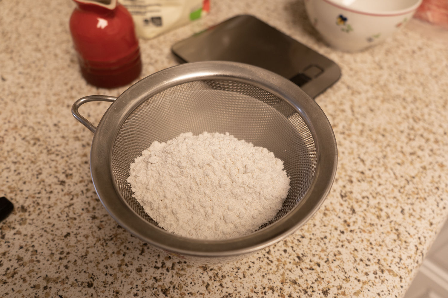 슈가 파우더는 체에 곱게 내리고, 우유와 함께 섞어요.